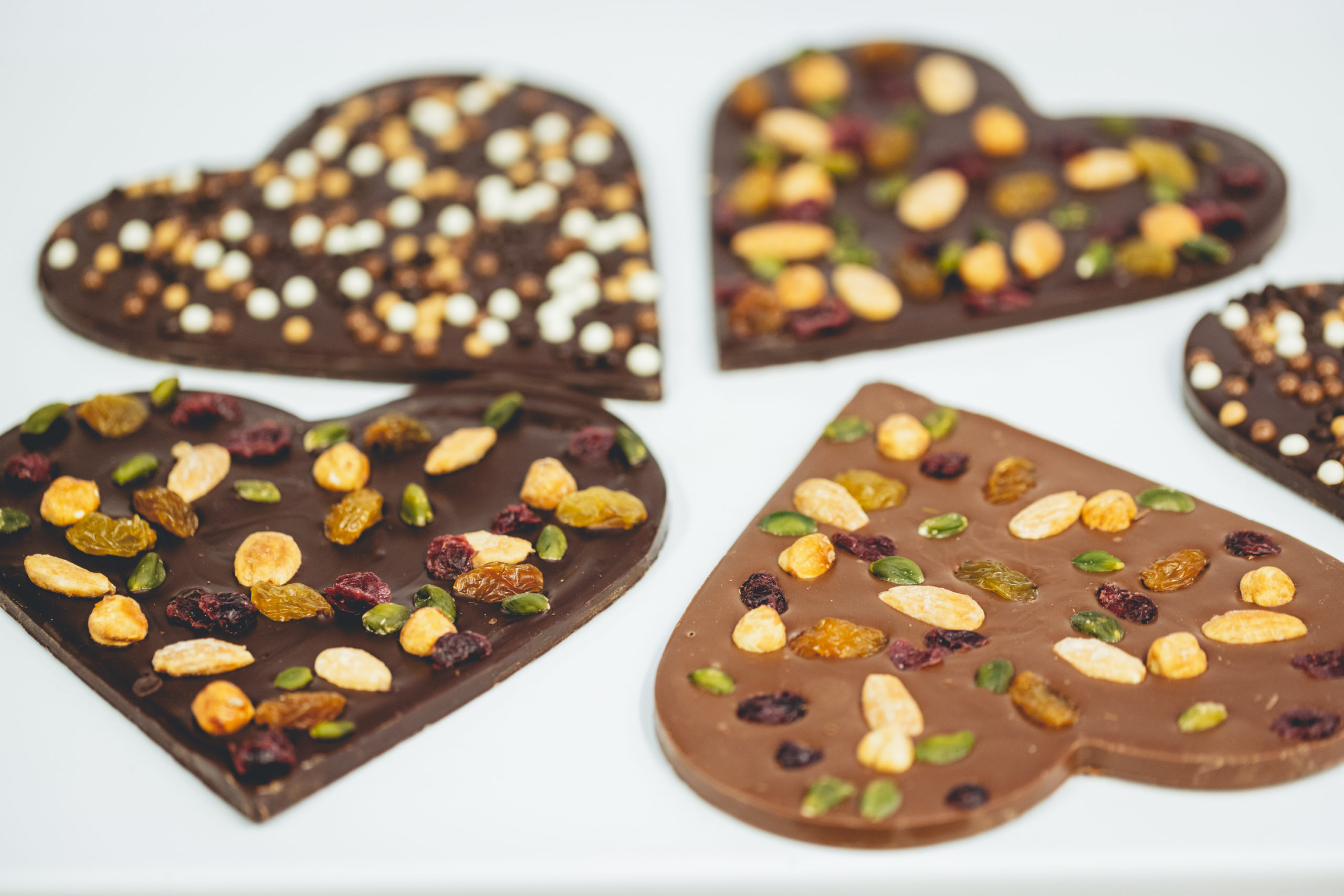 Petits coeurs garnis, tablettes coeur mendiants ou billes croquantes à partager, entremets duos à partager  et création 2026 à découvrir…